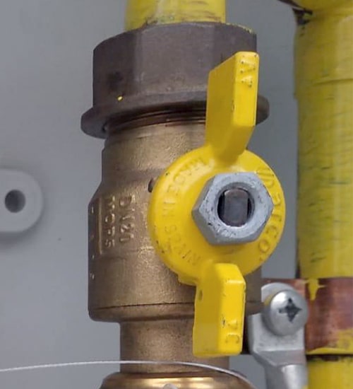 Analisar a válvula de corte aos aparelhos, que deve estar na posição aberta: na vertical, tal como o tubo de gás.
